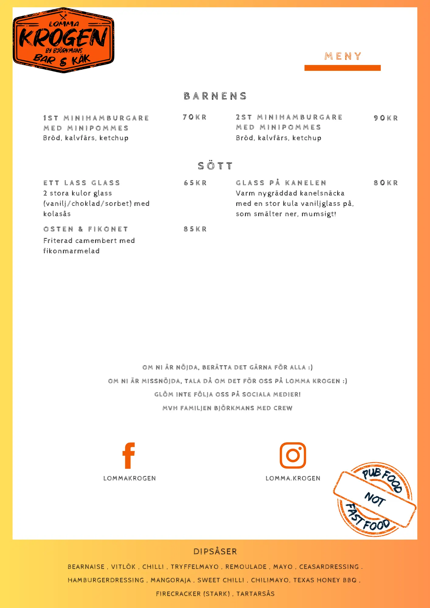 Utforska vårt matutbud nere på Lomma Krogen.